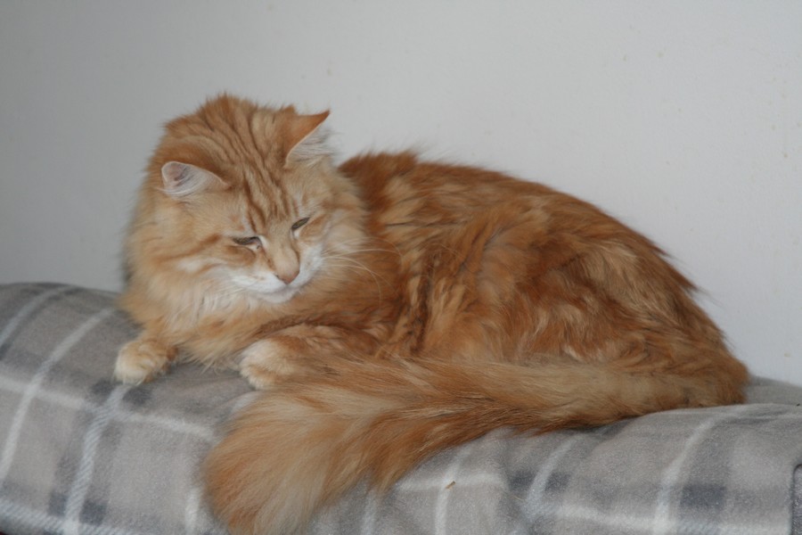 Tegan is a red tabby with the most delightful personality, loves both cats and humans, only too happy to sit on any vacant knee to get groomed and cuddled